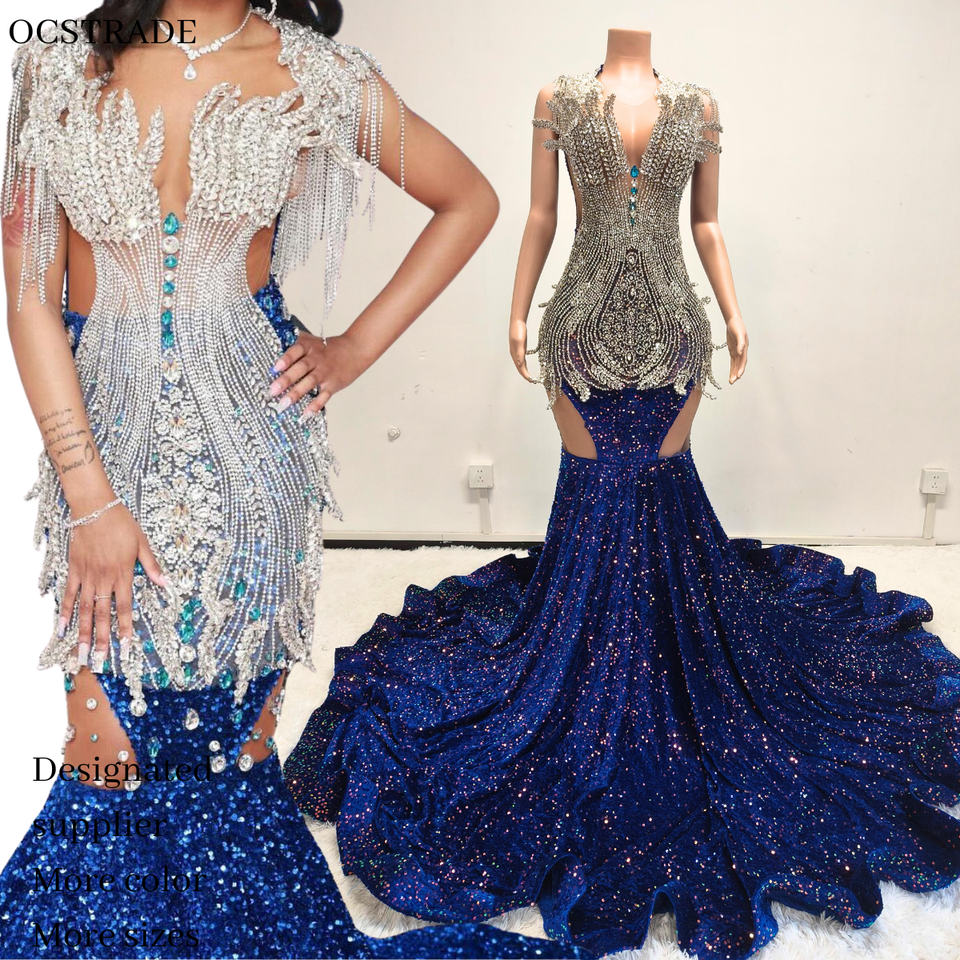 Ocstrade Luxury Stylish Elegant 3D Beaded Women's Evening Party Dresses with Sparkling Rhinestone Suitable for Parties Weddings