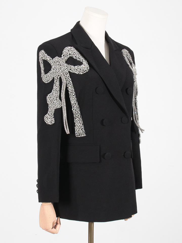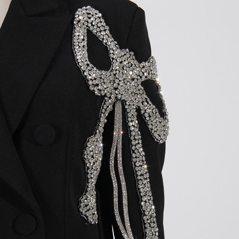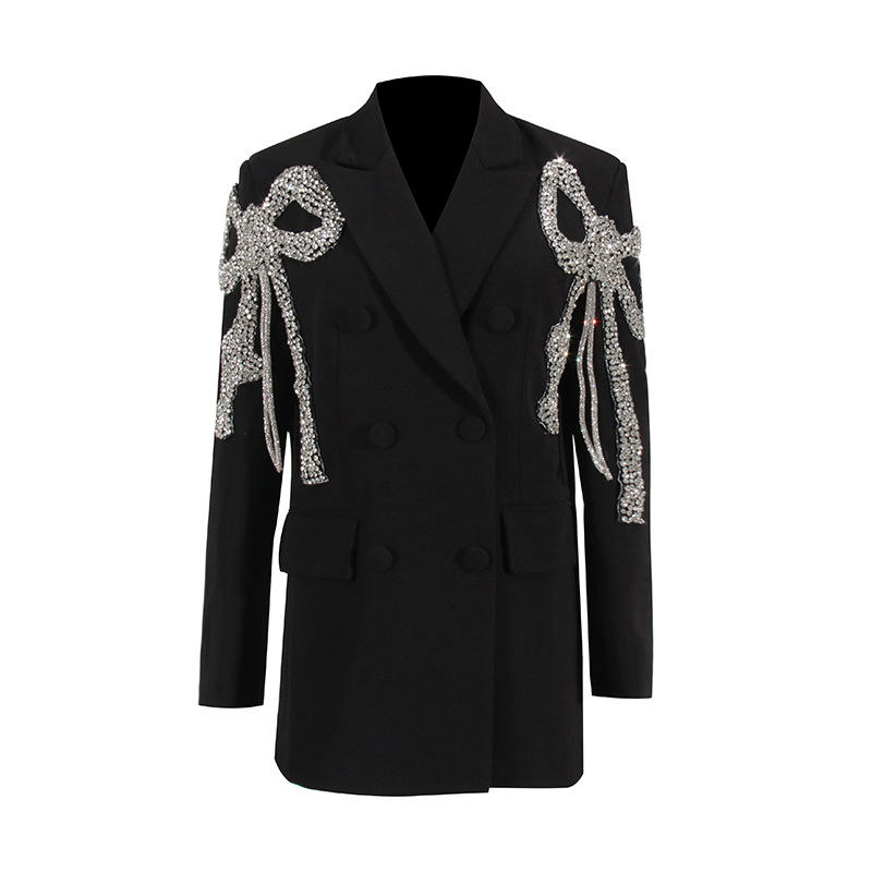 Ocstrade Nuova Collezione Primaverile: Blazer Lussuoso da Donna con Strass Scintillanti e Farfalle, Doppia Decorazione con Perline, Blazer Oversize Nero da Donna