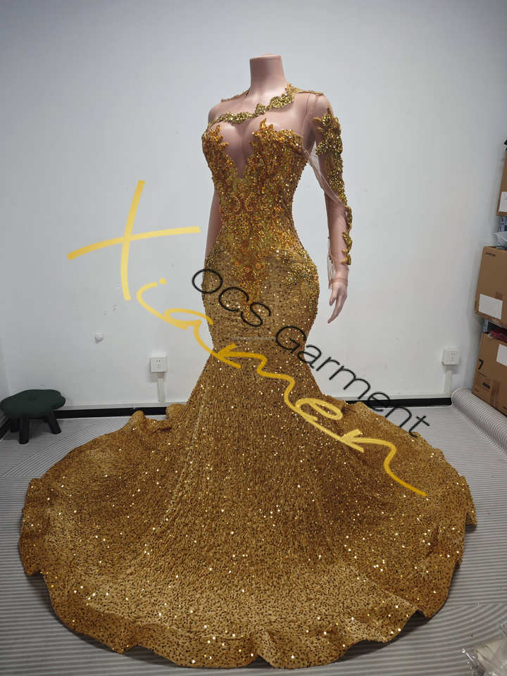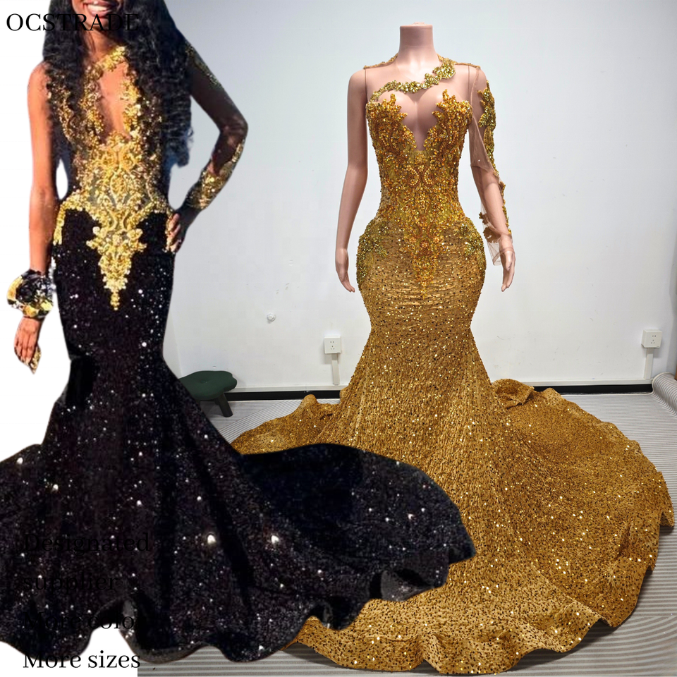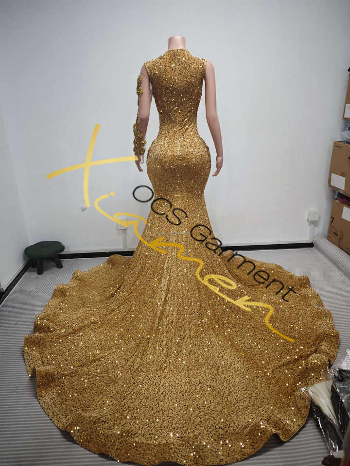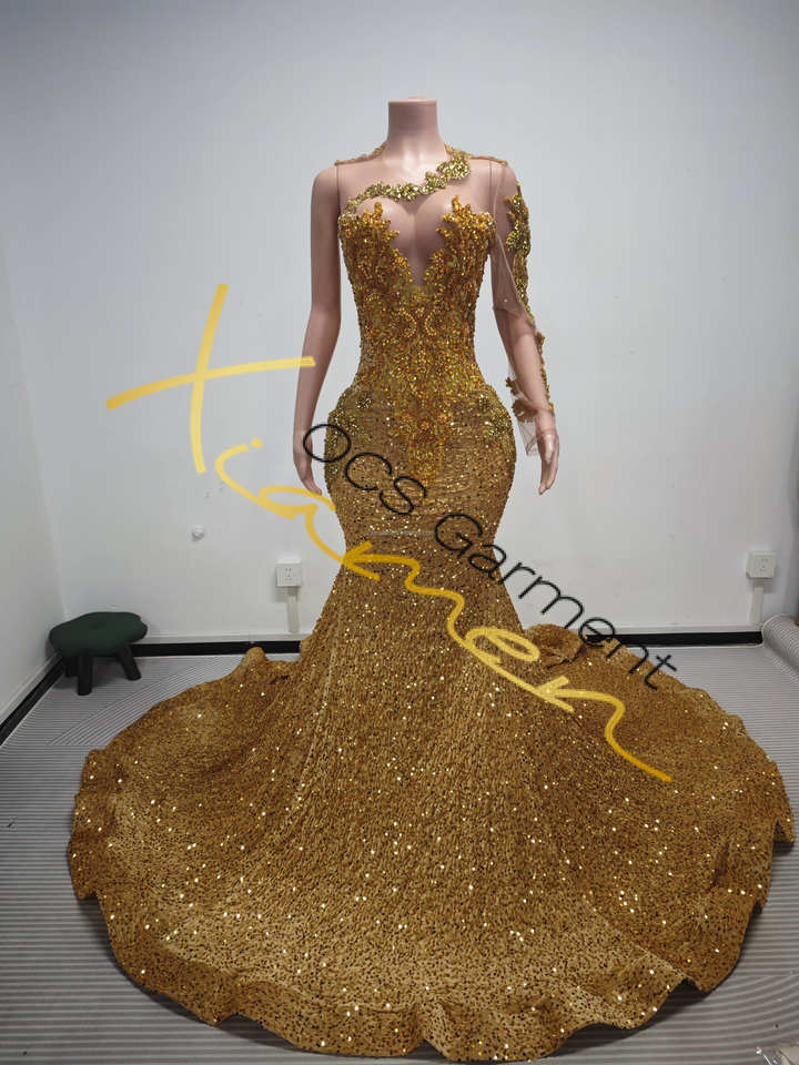 Fornitori Verificati Ocstrade Abiti da Sera Personalizzati Monospalla Stile Principessa con Strass Dorati di Lusso per Donna