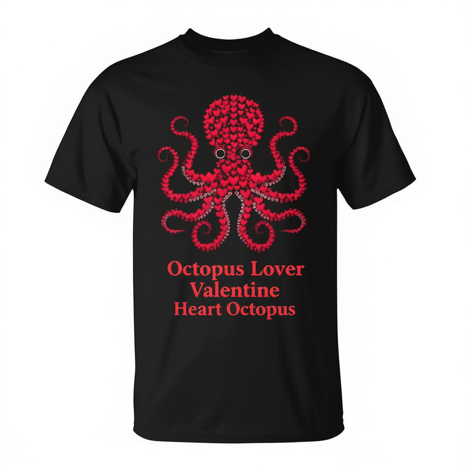 T-shirt Octopus Lover Valentine Heart Octopus nera per adulti unisex