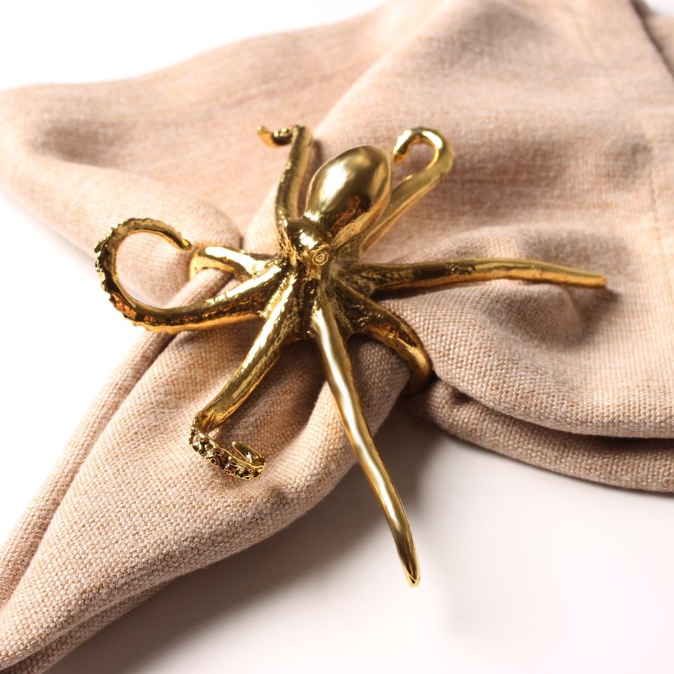 Octopus Metal Animal Shape Antique Silver Gold Color Napkin Ring Napkin Holder for Home Decoration, Theme Party