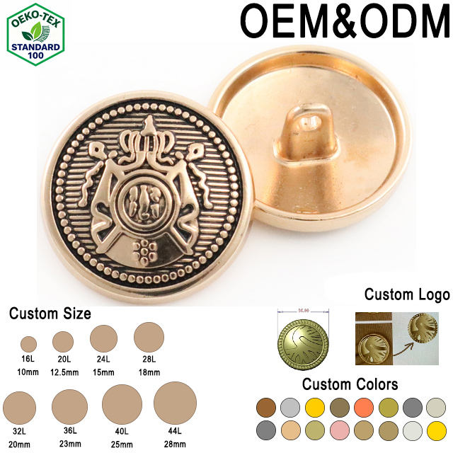 Bottoni in Lega di Ottone Personalizzati Oeko-Tex 12mm/20mm, Logo Inciso in Metallo Dorato, Lavabili e Senza Nichel per Cappotti