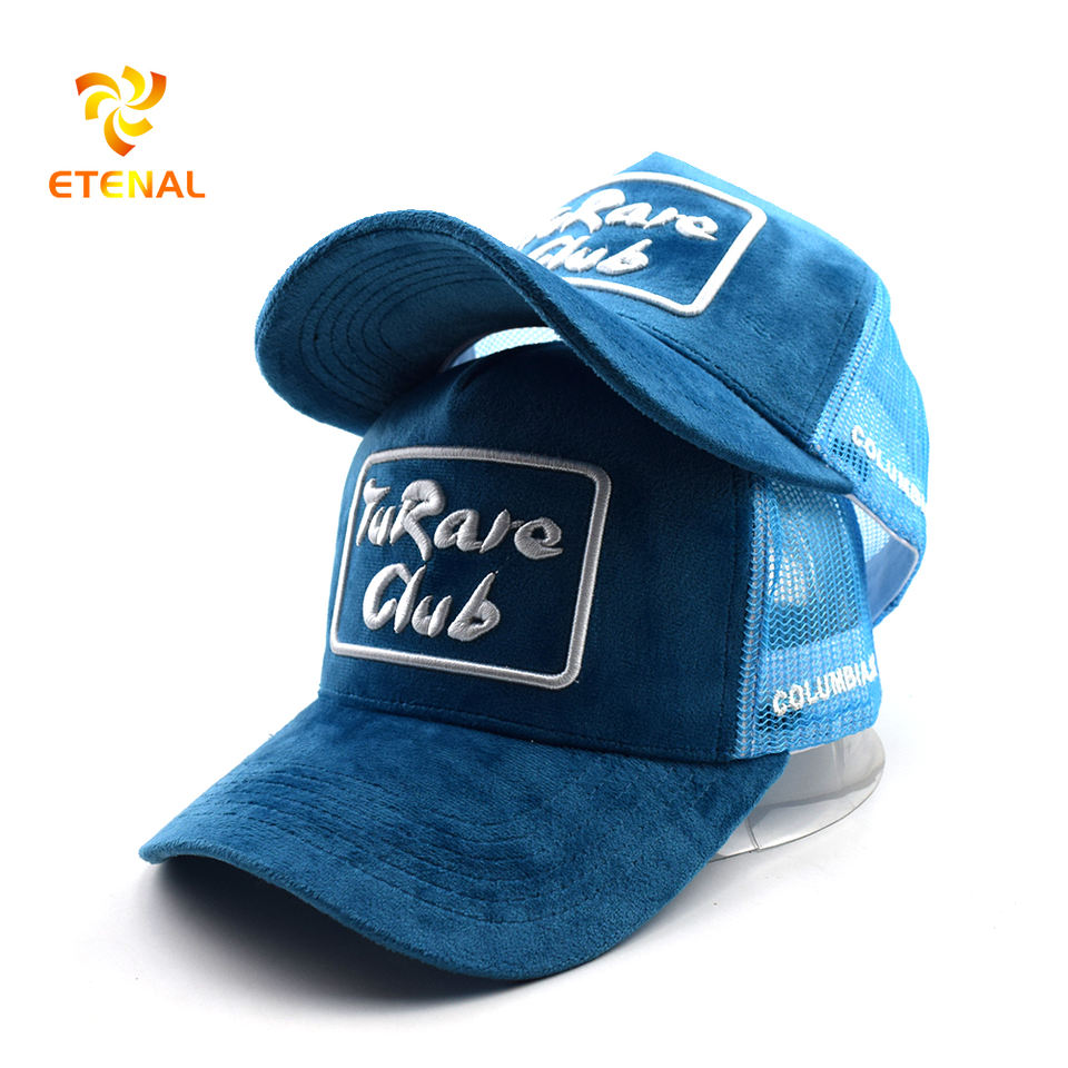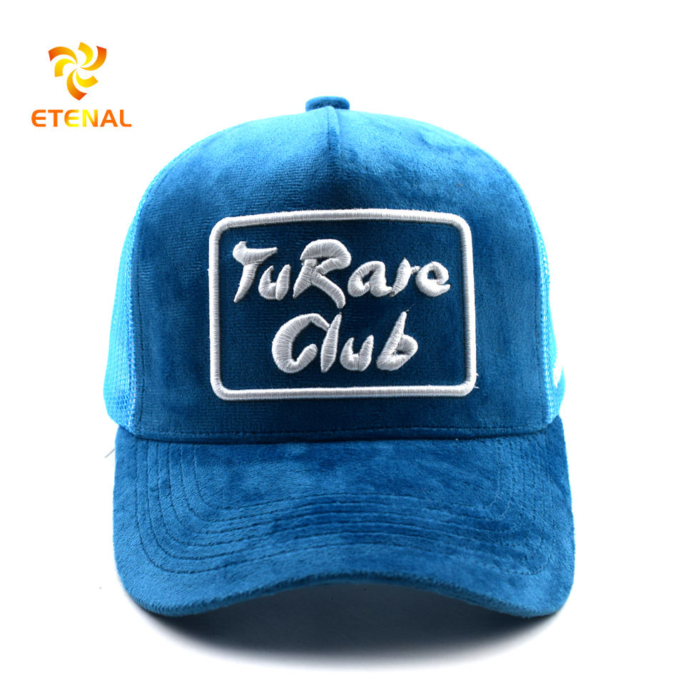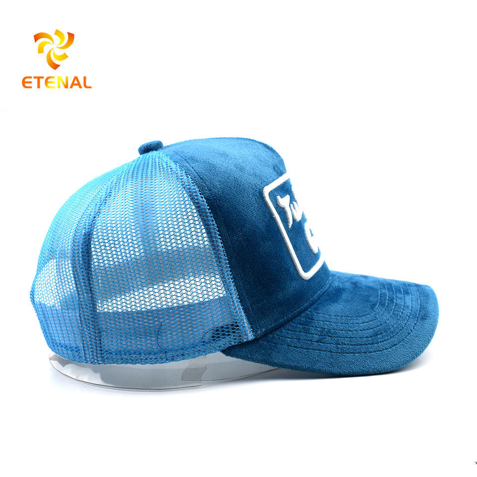 Articolo: Cappellino da Baseball:Ricamo 3D in Rete Snap Back Corras, Cappello Trucker in Velluto Blu Pavone