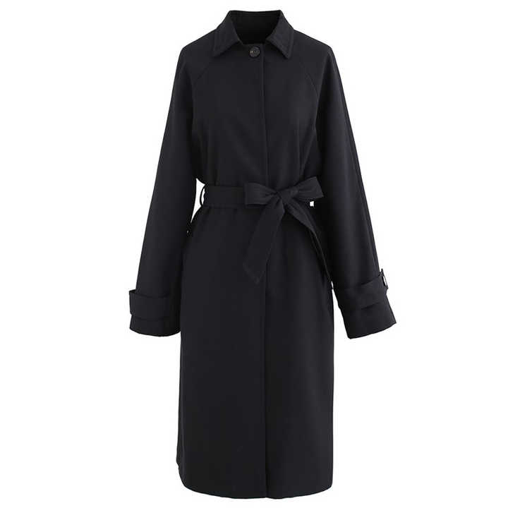 Oem Custom New Fashion girocollo maniche lunghe monopetto cintura lunga Trench da donna