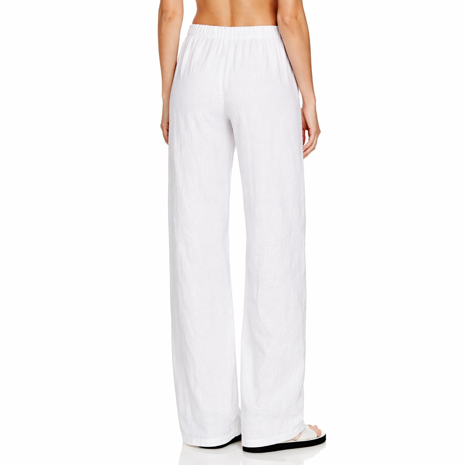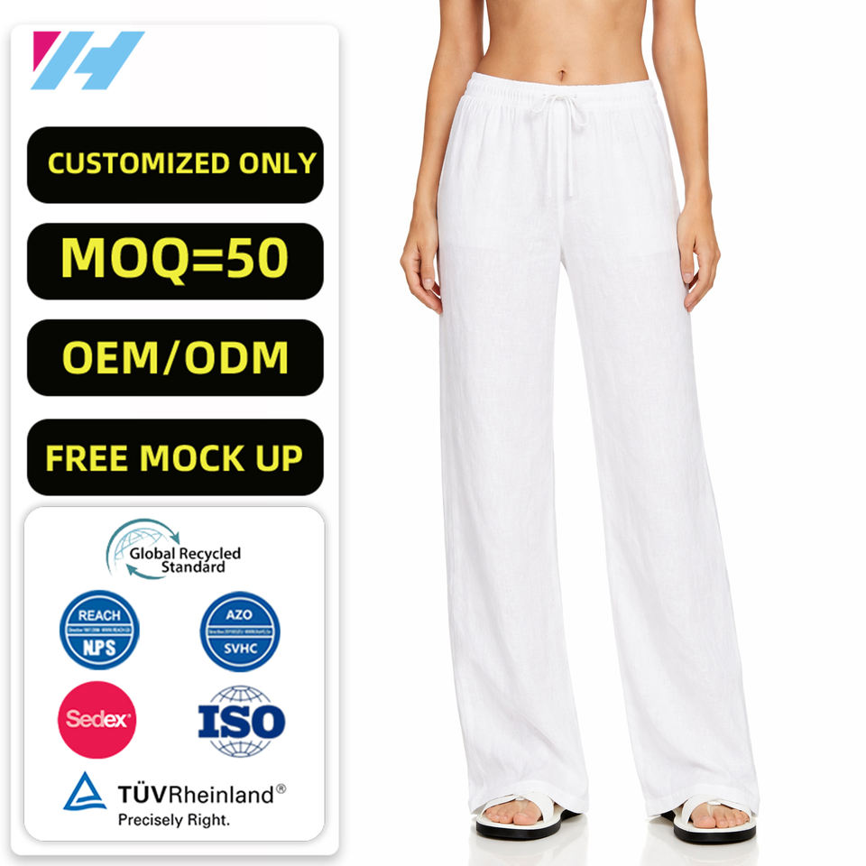 Oem Custom Wholesale Casual Ladies Wide Leg Beach White Trousers Cotton Linen Pants Women