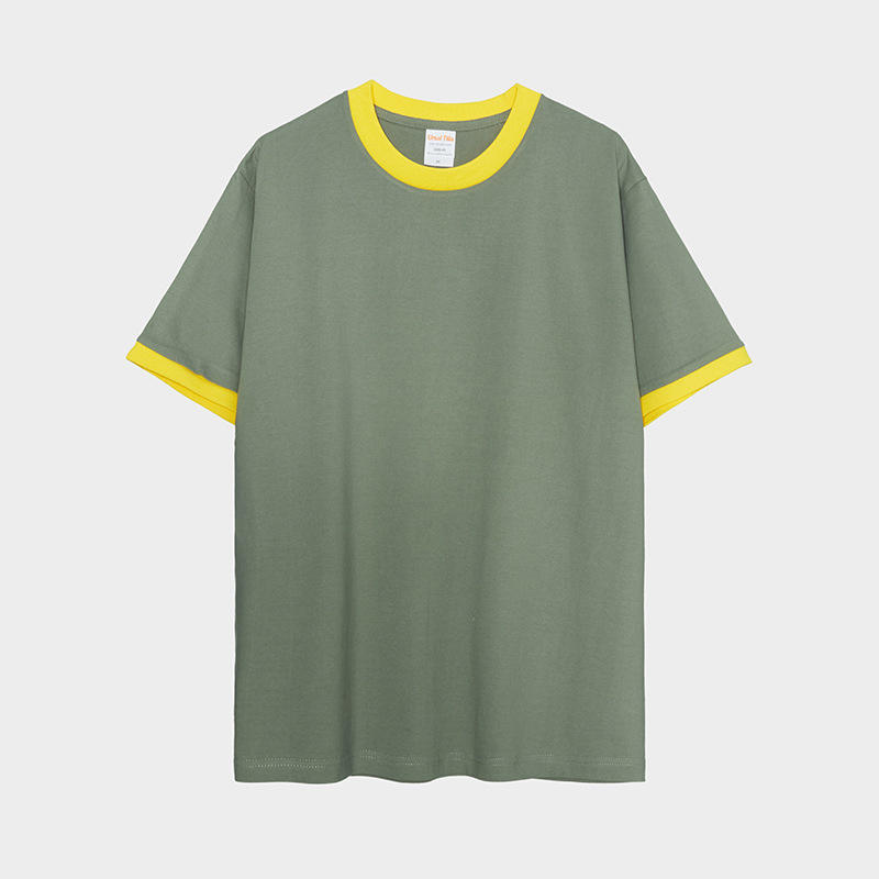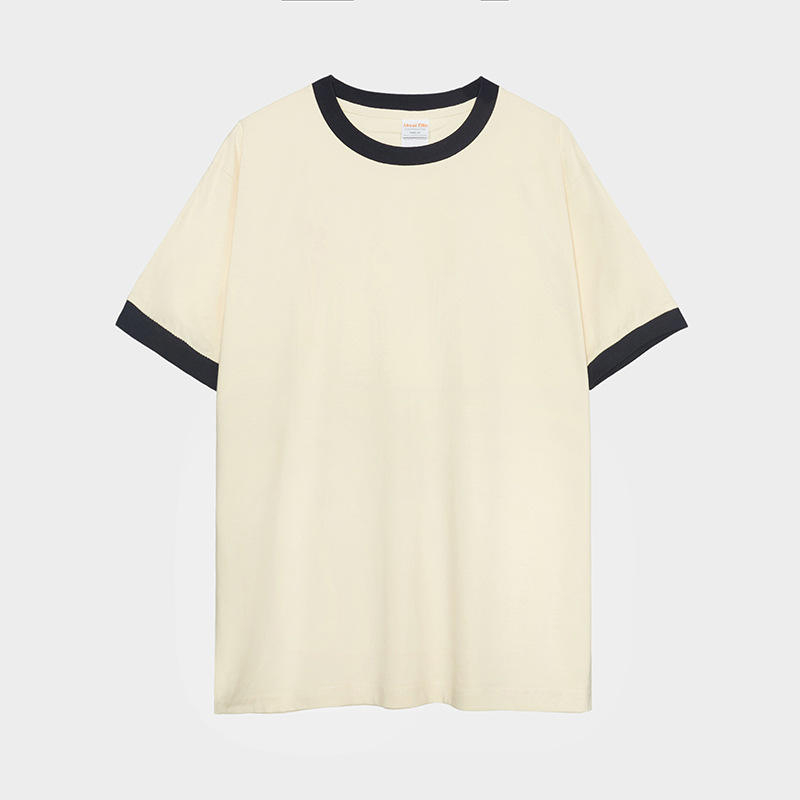 T-shirt da uomo con logo personalizzato stile stile casual da uomo in cotone bianco a contrasto con cuciture a mezza manica nera con top oversize