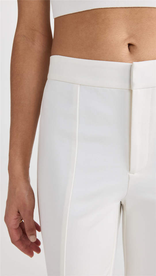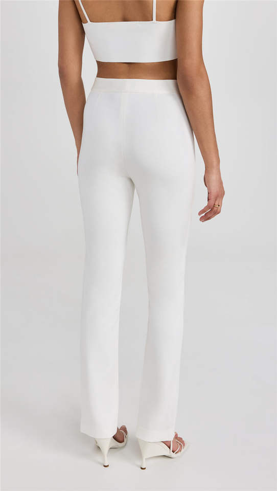 Oem Customized Manufacturer Casual High Waist Zipper Fly Side Pockets Pintuck Slit Fitted Leg White Suit Women Pants Trousers