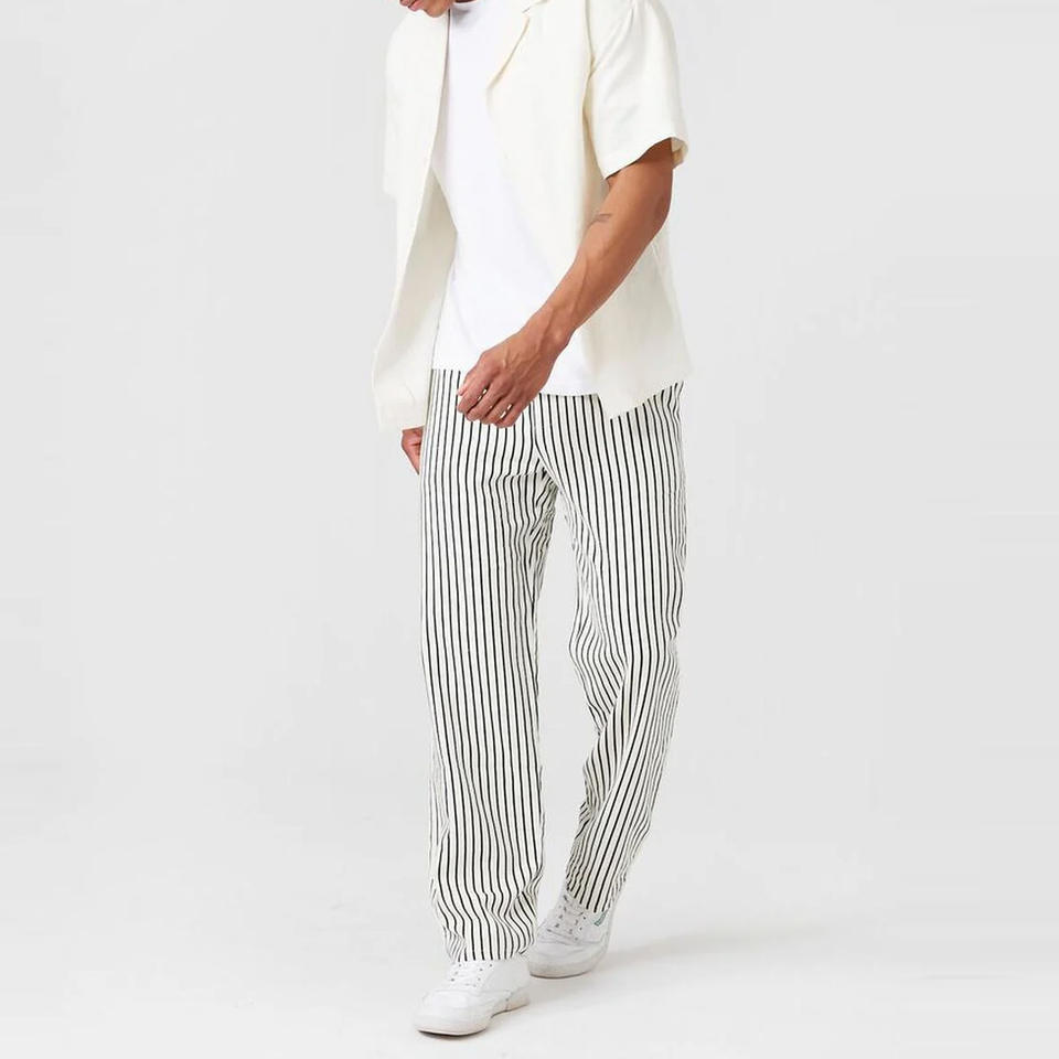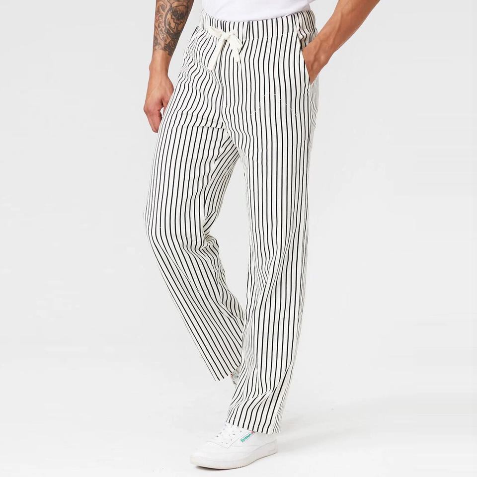 Nome del prodotto:Tasche con cuciture laterali e tasche posteriori a righe Allover pantaloni di lino da uomo