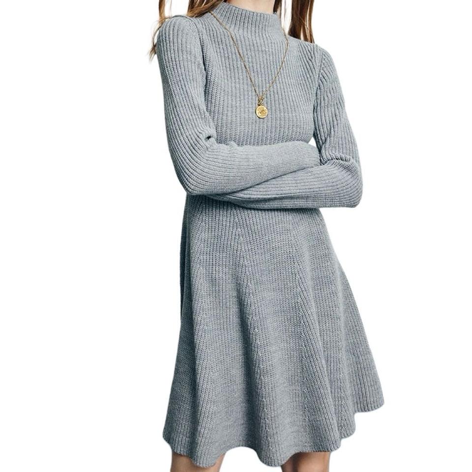 Oem gonna svasata a collo alto 100% lana autunno inverno Computer in maglia Preppy stile ufficio donna abito Midi per donna ragazza