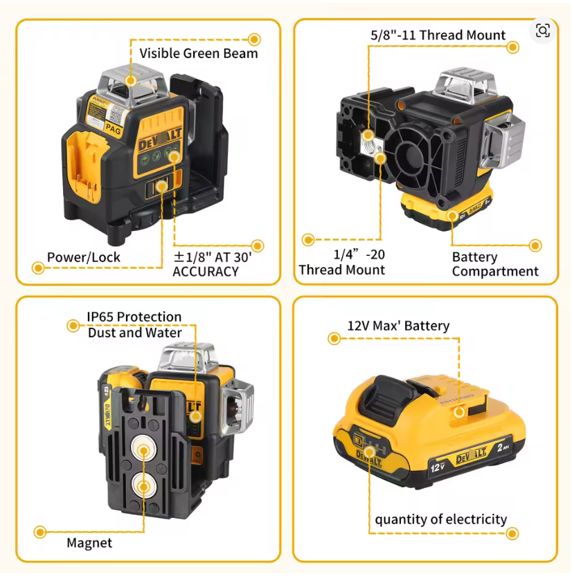 Livella Laser Lineare Verticale a 3 Lati (360 Gradi) OEM di Alta Qualità DW089LG, con Batteria al Litio 12V, per Esterni, Colore Verde