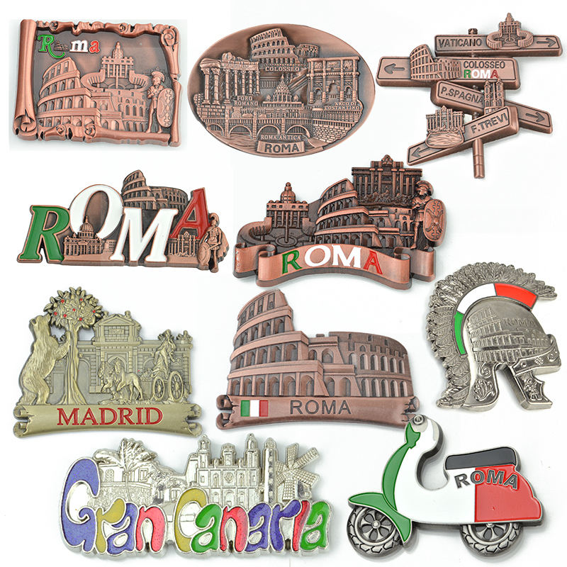 Magnete per Frigorifero in Metallo OEM ODM, Magnete Personalizzato 3D per Città e Paesi, Souvenir Turistico Personalizzato per Sublimazione