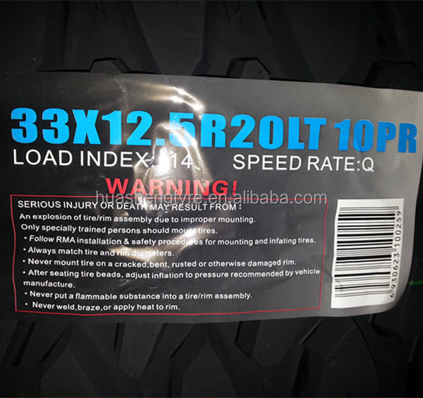 Off-road vehicles tire 33x12.5R20 LTNumero del Modello