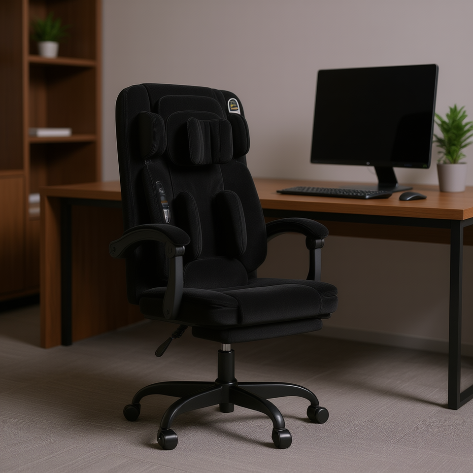 Sedia da Ufficio con Schienale Alto in Pelle PU, Funzione Massaggio, Braccioli Regolabili, Base Girevole, Gambe in Metallo Cromato, Design Elegante