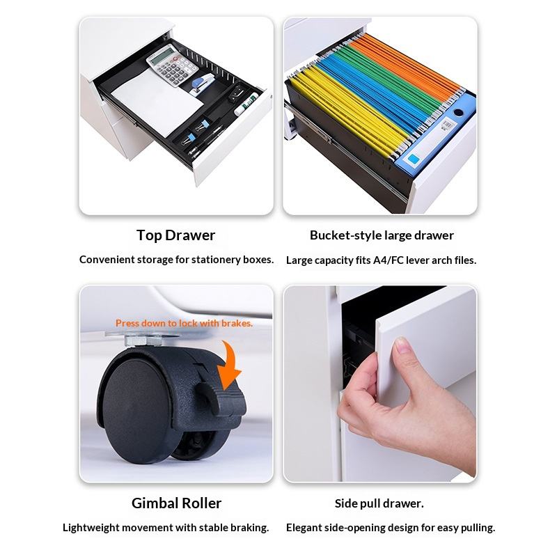 Office Desk Movable Steel Filing Cabinet with 3 Drawers Lock Fireproof Modern Simplicity Design