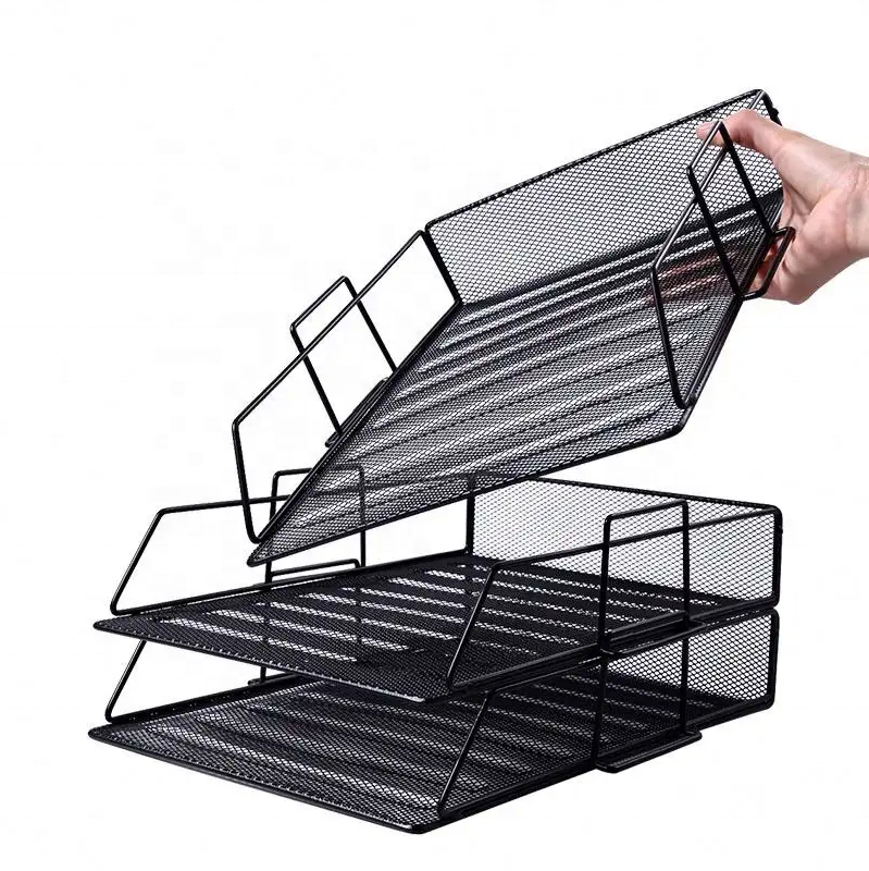 Organizer per scrivania da ufficio file di carta a rete a 3 livelli Amazon vendita calda documento fornitura di fabbrica vassoio per lettere impilabile per supporto per organizer