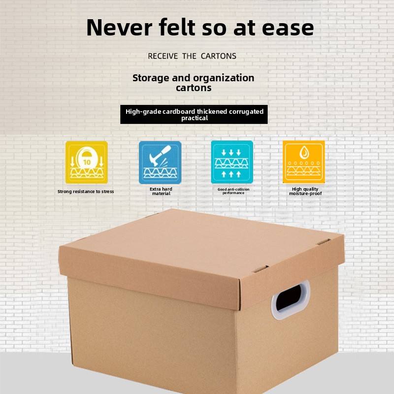 Scatola Organizzatrice per Documenti da Ufficio, Scatola per Traslochi Extra Resistente e Grande con Coperchio e Maniglia, Scatola di Carta per Imballaggio, Cartone Pieghevole in Cartoncino Kraft