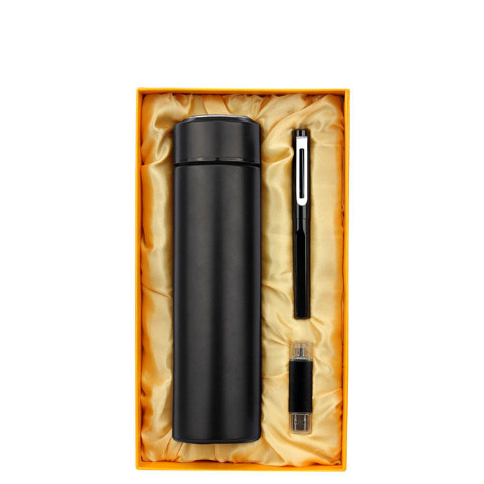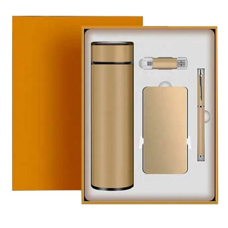 Office gift set for women and men promotional temperature display water bottle+power bank+pen+usb flash drives