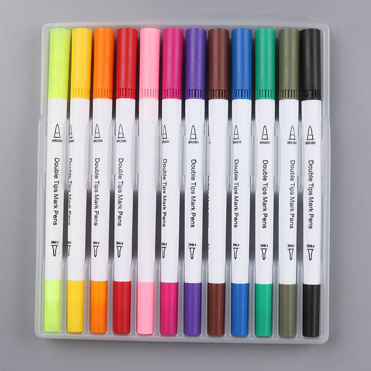 Office School Supplies 12 Colors Dual Tip Fineliner Drawing Painting Watercolor Art Marker Brush Pens Set