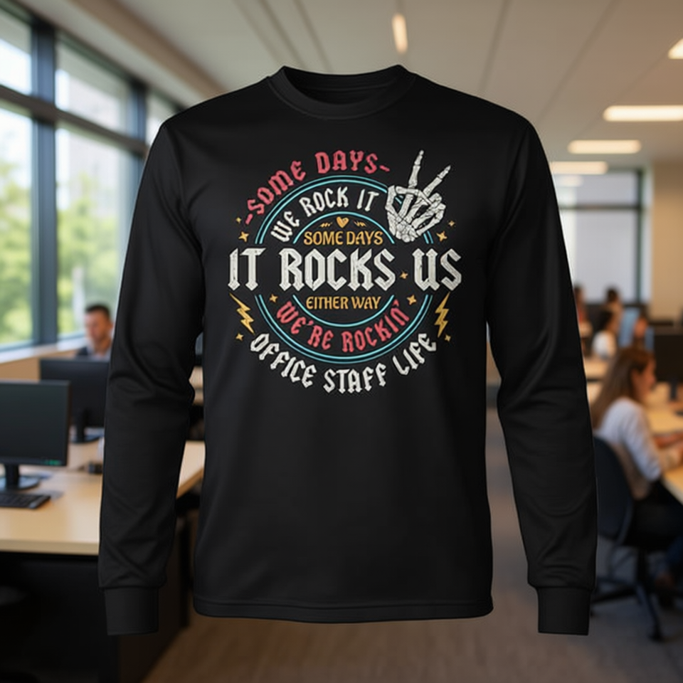 T-shirt a maniche lunghe Office Staff Life con design Rock IT Back To School