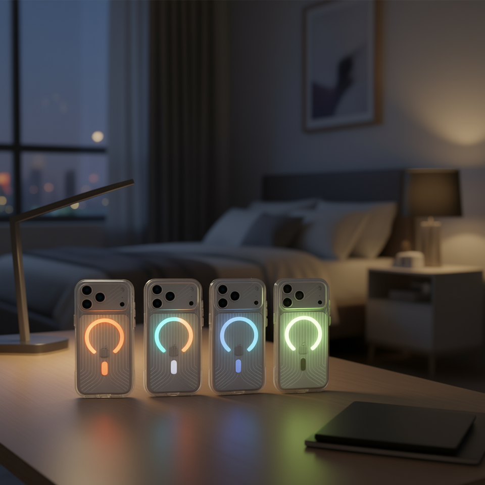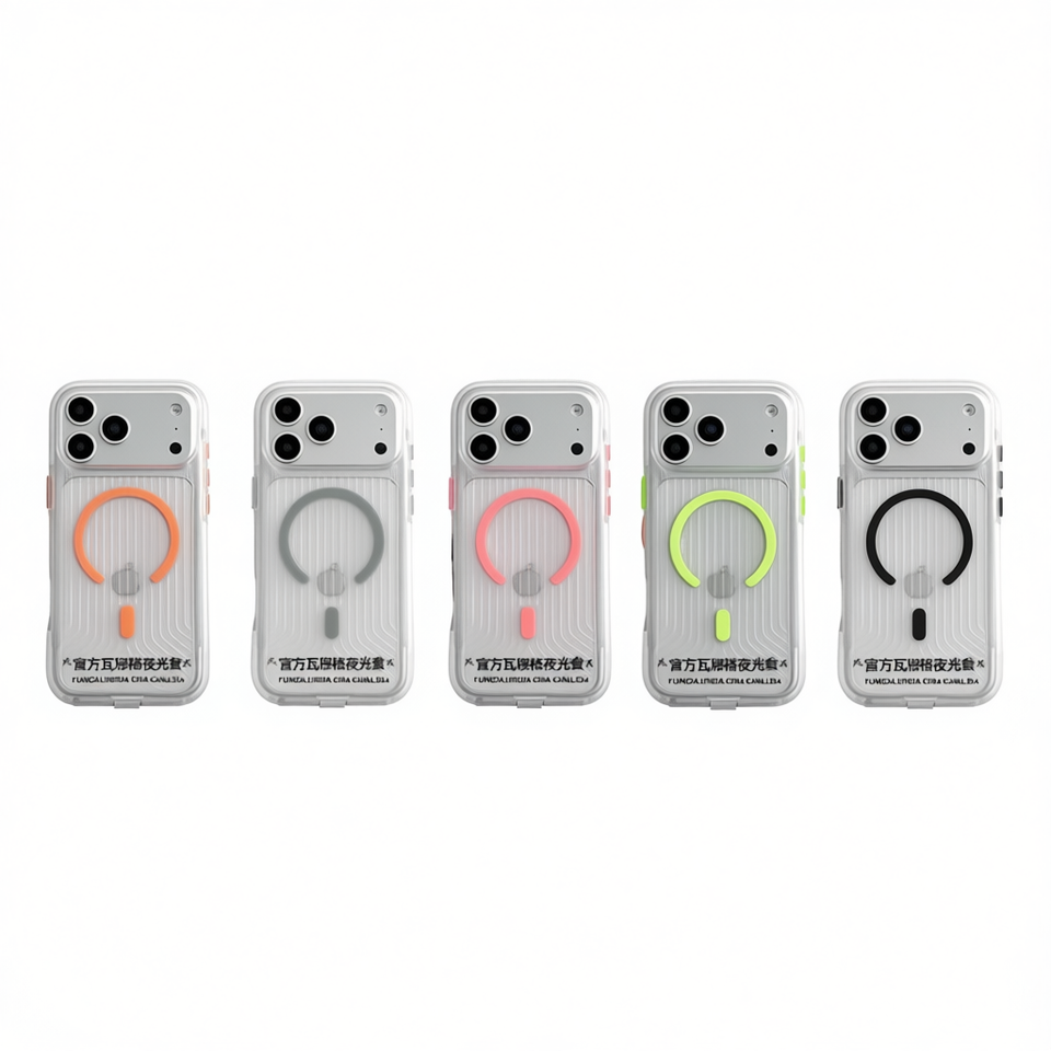 Custodia Ufficiale IP 16 PRO MAX con Design Trasparente in Materiale TPU+PC, Anello Magnetico, Luminosità, Texture Scanalata e Cordino