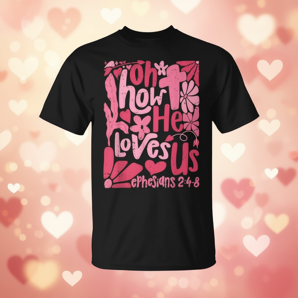 Oh, quanto ci ama! T-shirt floreale Boho con Gesù, promozione per San Valentino