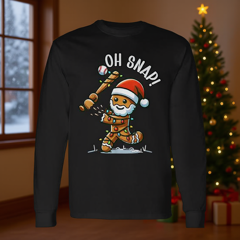 Oh Snap Gingerbreadman Christmas Baseball T-shirt a maniche lunghe Divertimento natalizio