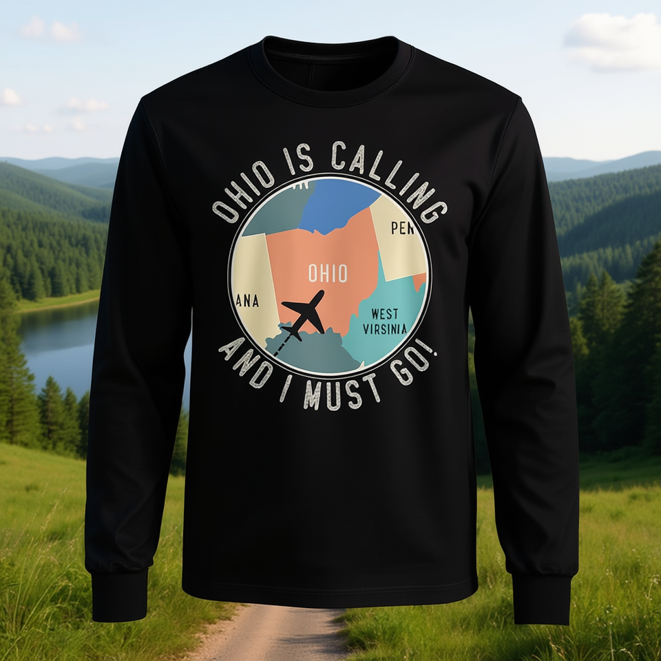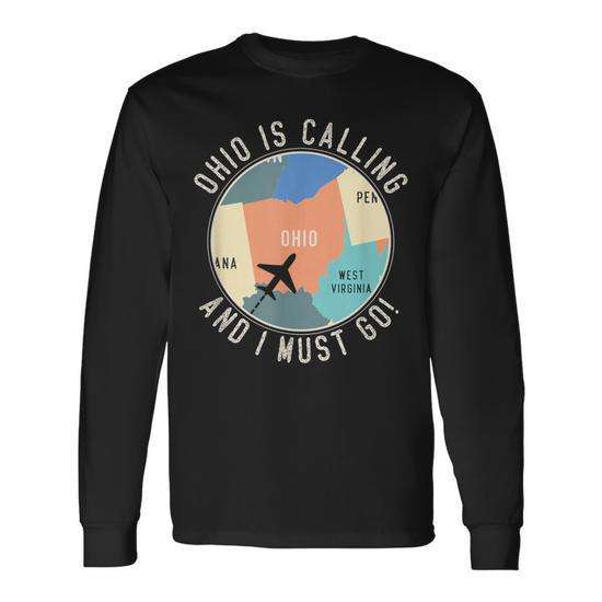 Ohio sta chiamando e devo andare. T-shirt a maniche lunghe con mappa dell'Ohio
