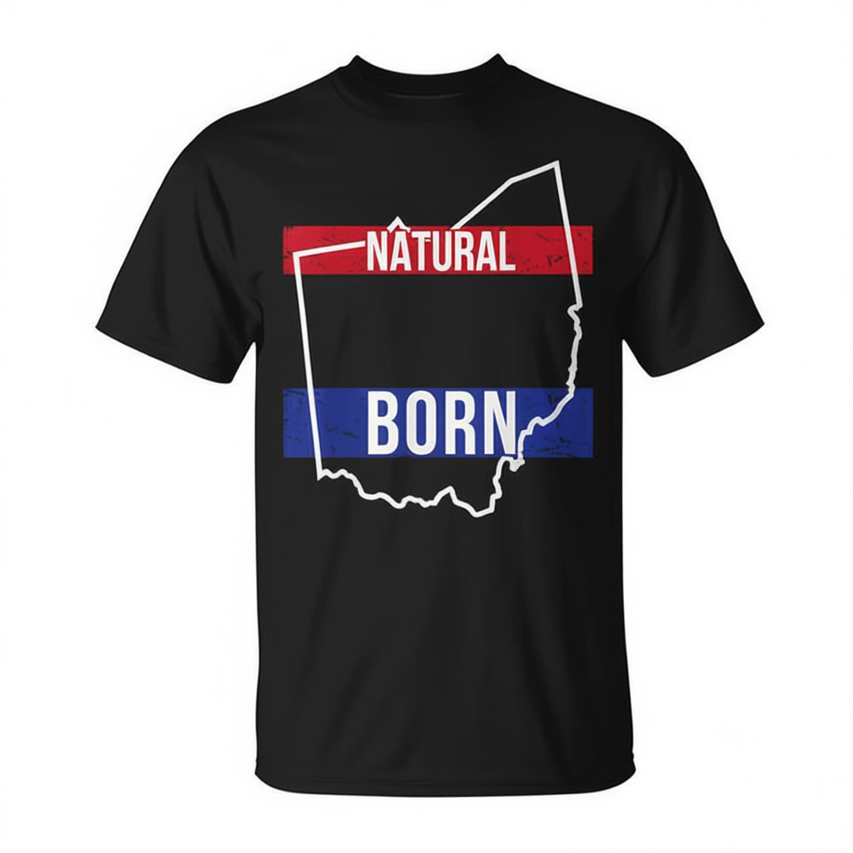 Maglietta Ohio Native con design Natural Born State Pride, nera, unisex