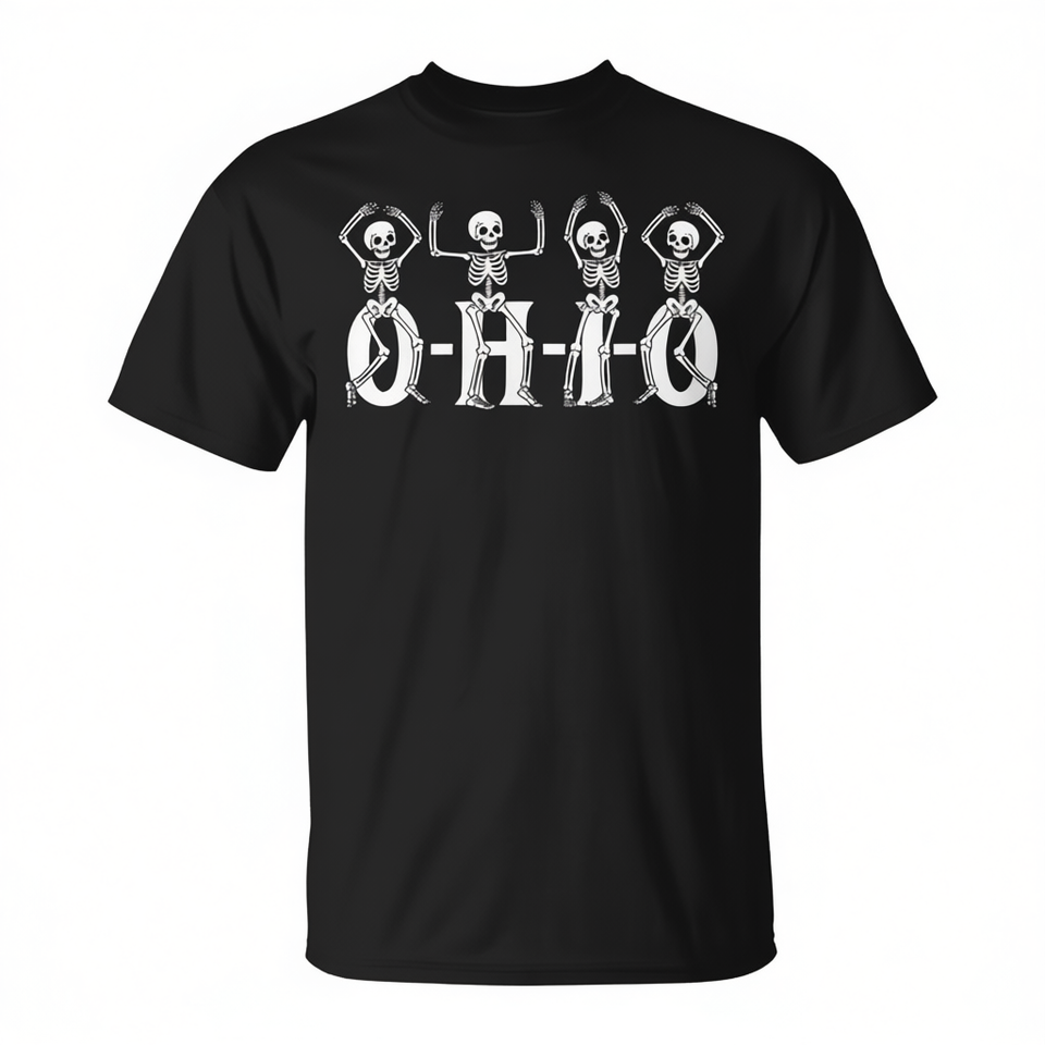 Ohio Skeleton O-H-I-O T-shirt divertente con atmosfera vintage di Halloween