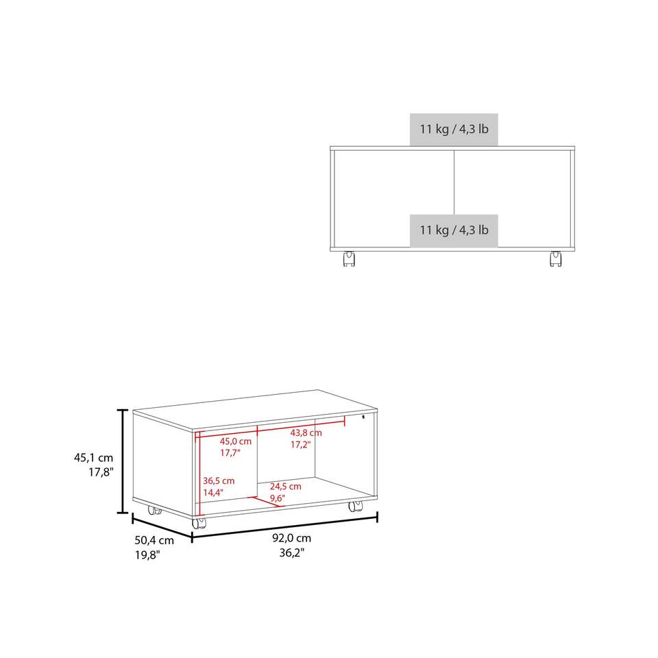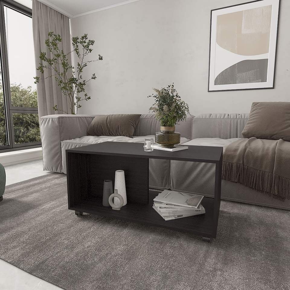 Tavolino da Caffè Oidak Gu Open Storage in Wengue con Ruote