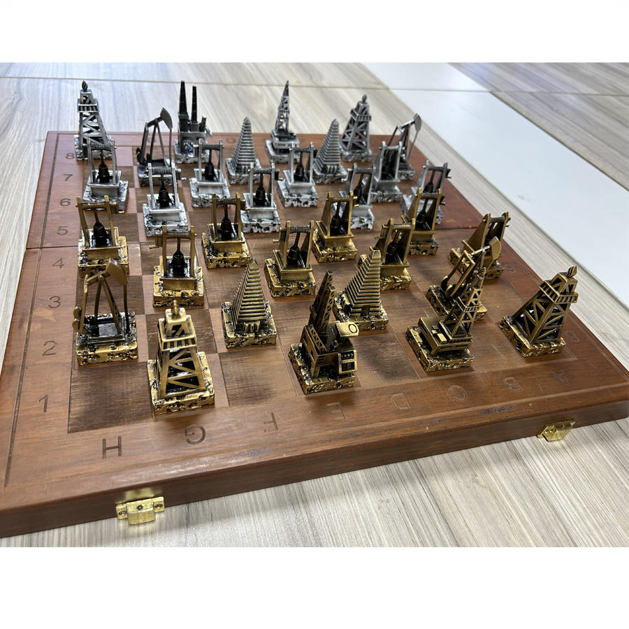 Compagnia petrolifera regalo estivo 3D in metallo per scacchi piattaforma di trivellazione petrolifera per bambini paesi mediorientali promozionali internazionali