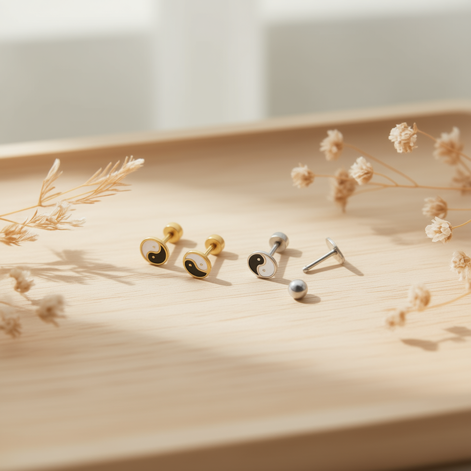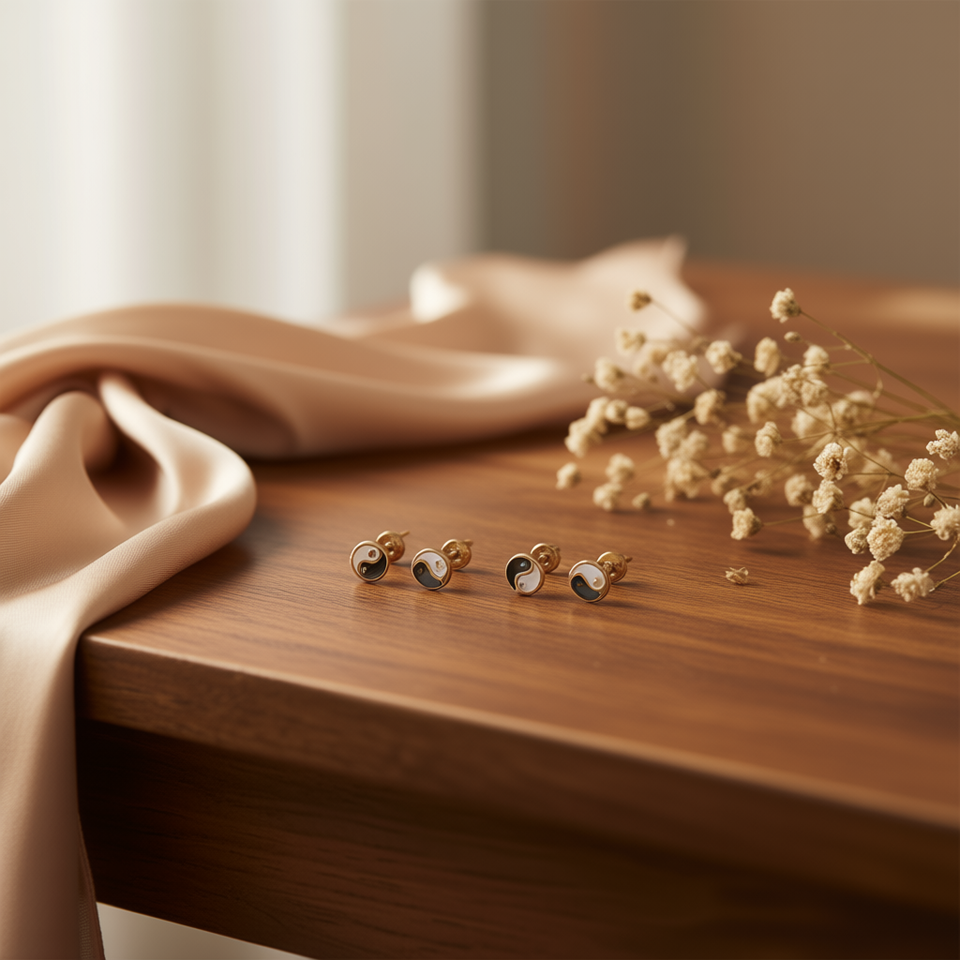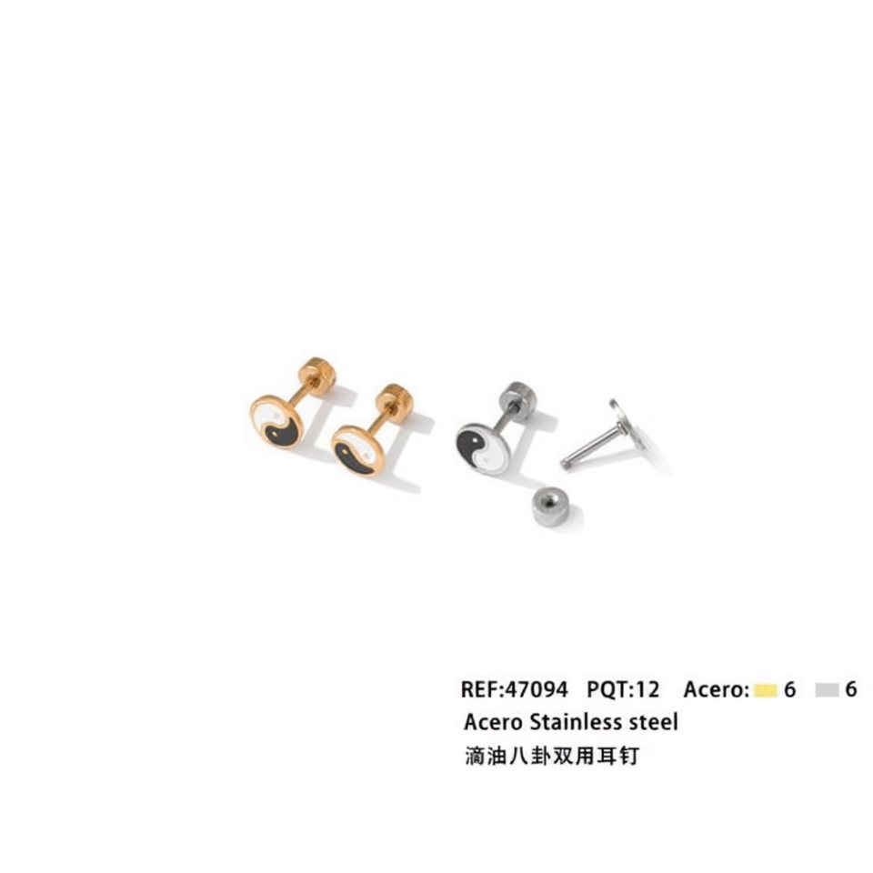 Angelina Bagua Stud Earrings Stainless Steel Gold Plated Unisex Fashion Jewelry