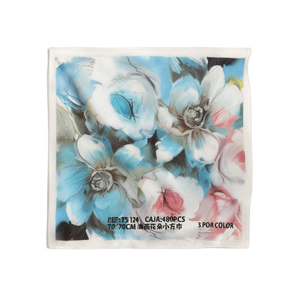 Foulard quadrato piccolo con pittura a olio floreale 70x70cm, accessorio moda da donna