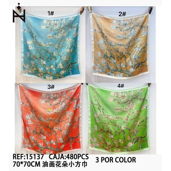 Foulard Quadrato Piccolo con Stampa Floreale a Olio 70x70cm, Accessorio Moda per Donna