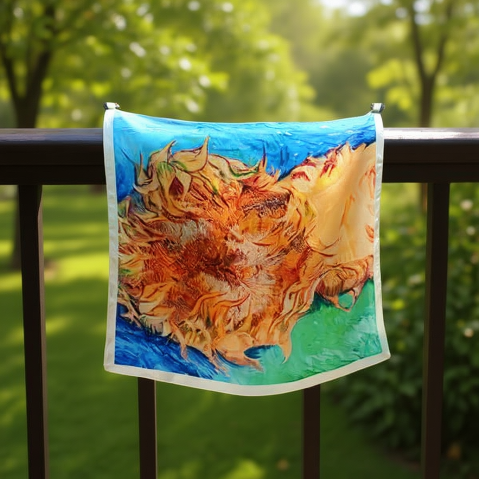 Sciarpa Quadrata Piccola con Dipinto a Olio di Girasoli 70x70Cm FULARES