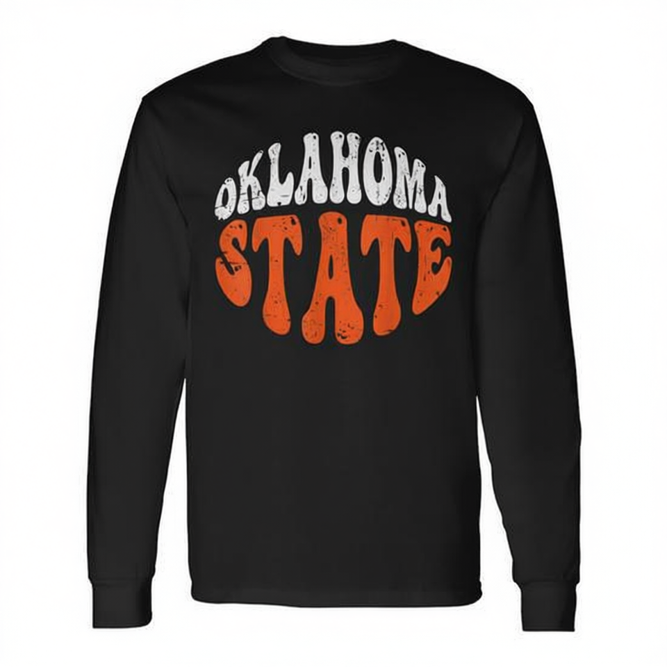 T-shirt a maniche lunghe vintage effetto invecchiato Oklahoma State