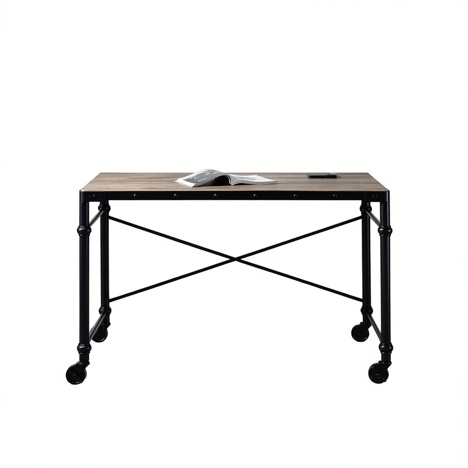 Scrivania da Ufficio Rustica in Rovere Oklarth, Finitura Nera, Design Moderno, Autoportante, Arredamento Commerciale