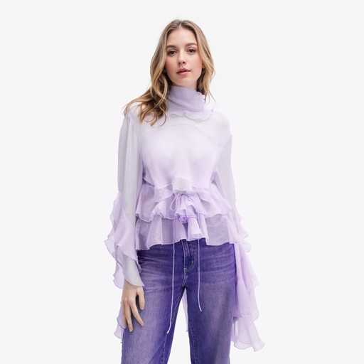 Olaesa Fashion High Quality New DesignPurple Ruffled Trim Long Sleeve Organza Top Blouse With Ruffle on Sleeves