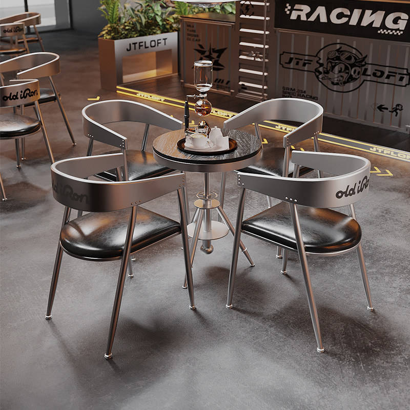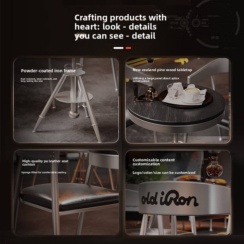 Set Tavolo e Sedie in Stile Industriale da Officina in Ferro Antico per Ristoranti, Negozi di Tè, Caffetterie, Bar e Attività Commerciali in Ferro Battuto