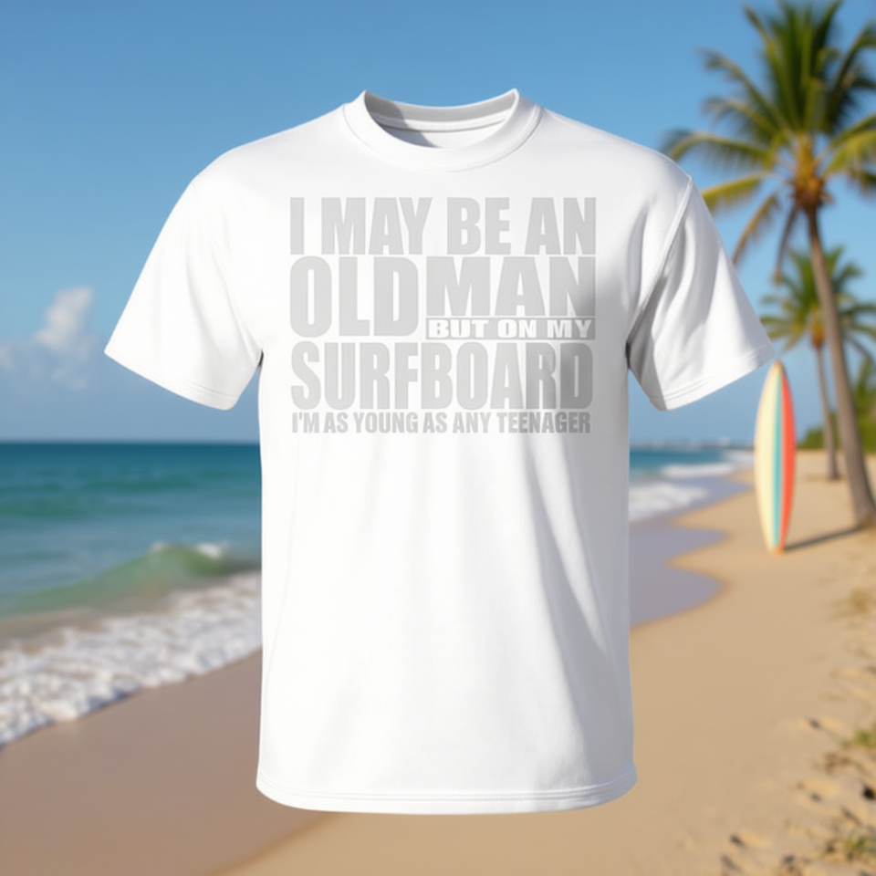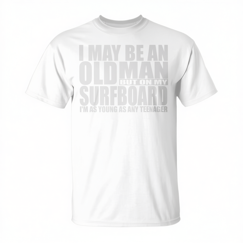 Maglietta Old Man On Surfboard per papà surfista, maglietta per il 50° compleanno