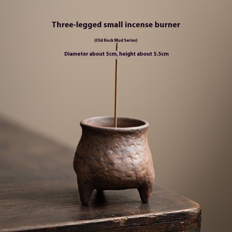 Vecchio fango di roccia a tre gambe Retro bruciatore di incenso piccolo diffusore di aromaterapia per Kung Fu Set da tè per interni decorazione Desktop incenso