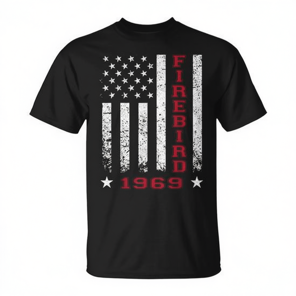 T-shirt promozionale Old School Muscle Cars 1969 per Firebird 69 in stile Jersey