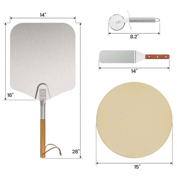 Pietre Rettangolari in Pietra per Pizza e Crosta di Torta, Paletta in Bambù, Accessori per Forno a Legna Resistente alle Alte Temperature, 15 Pollici