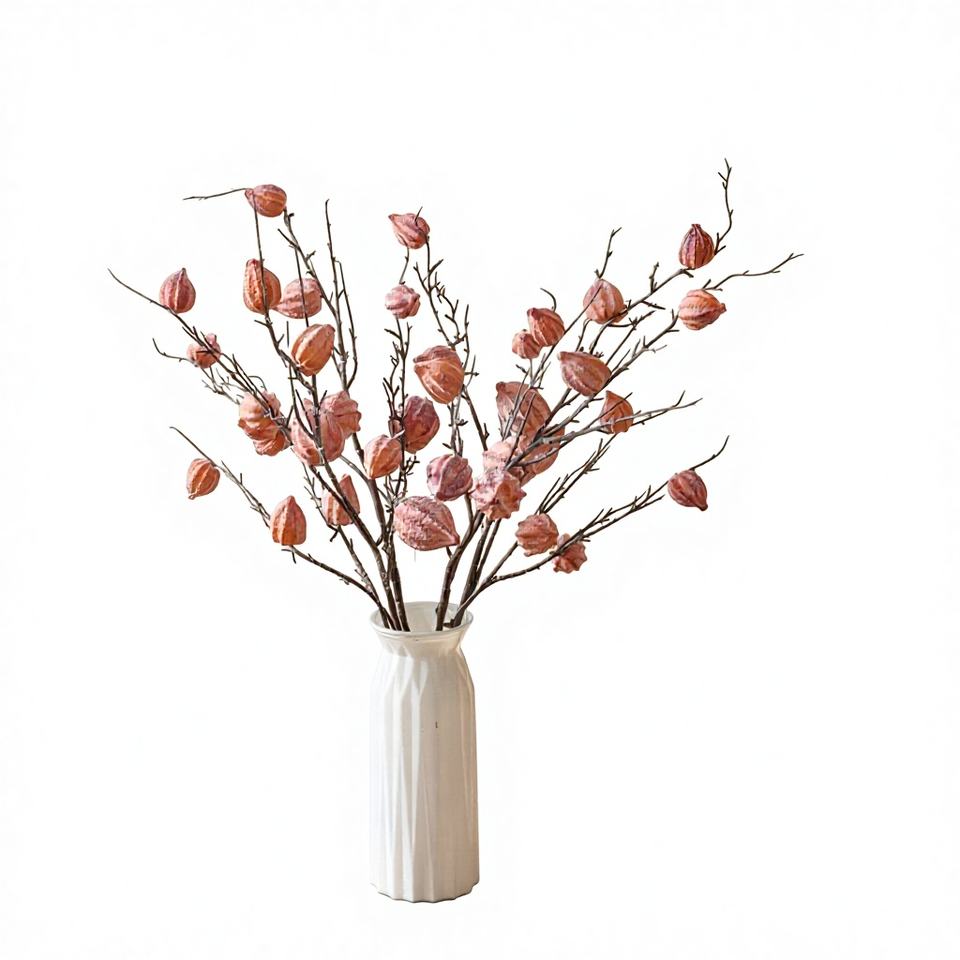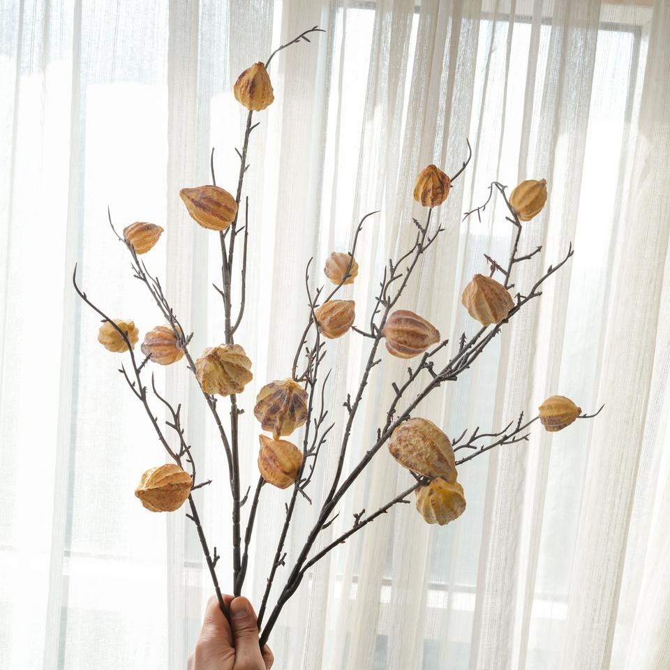 Lanterna da Tavolo in Legno Antico con Fiori Artificiali Physalis, Piante Verdi Finte, Decorazioni per Matrimoni all'Ingrosso, Artigianato Stile INS