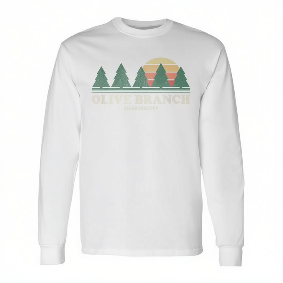 T-shirt promozionale vintage anni '70 Olive Branch MS a maniche lunghe, stile retrò