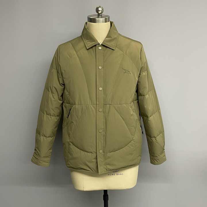 Olive Green Collared Down Shirt Jacket - OEM/ODM Casual Warm Winter Coat for Wholesale Customization