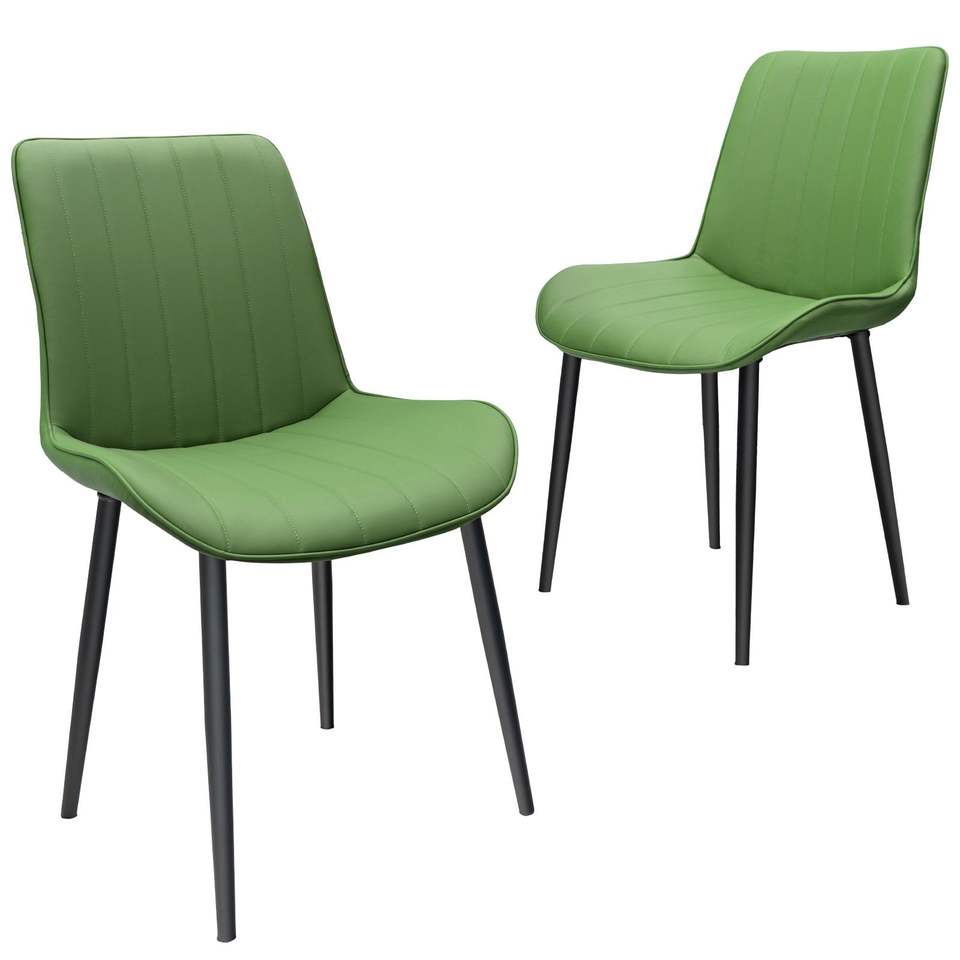 Set di Sedie da Pranzo in Pelle PU Verde Oliva con Motivo a Onde, Senza Braccioli e Gambe in Metallo per Cucina e Ristorante