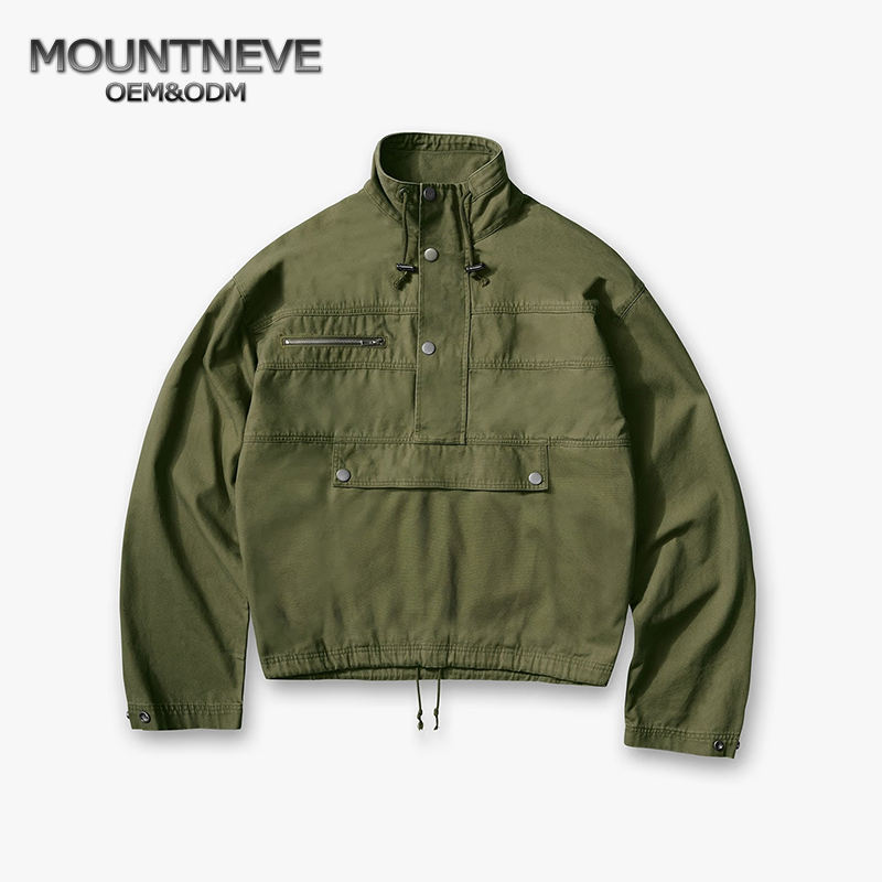 Olive Green Winter Men's Thick Eco-Friendly Utility Jacket with Front Multi Pockets Adjustable Drawstring Durable Wind-Resistant
