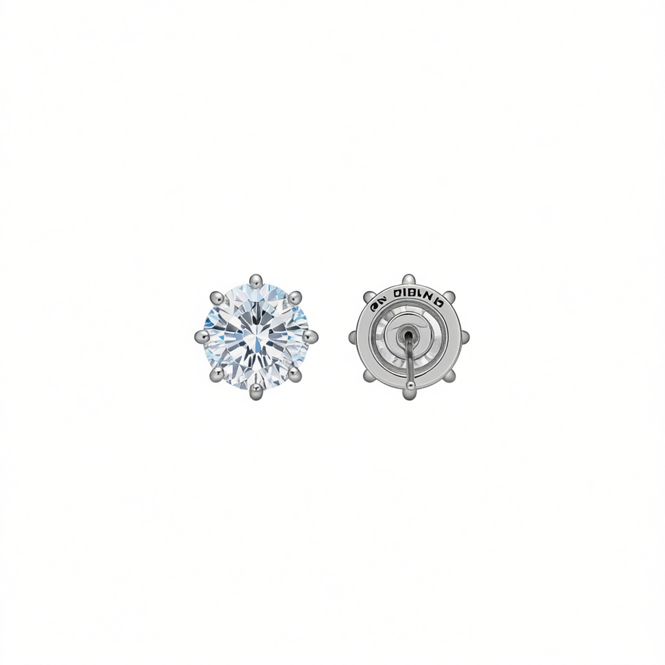 Omnia Diamond Stud Earrings 925 Silver Round Brilliant Cut Claw Setting Women's Classic Engagement Jewelry