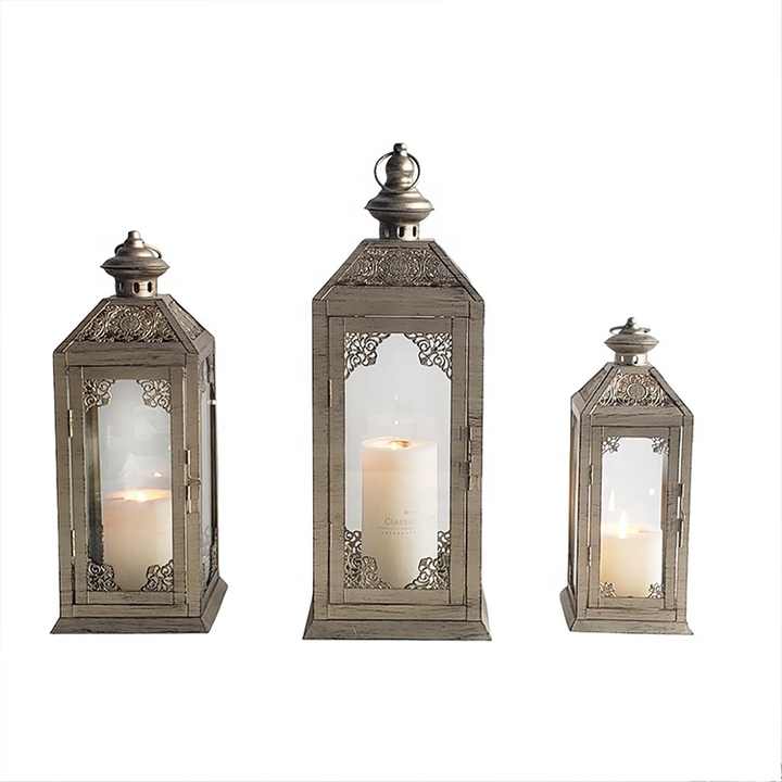 In vendita oro giardino lanterna di cerimonia nuziale decorativa ha condotto la candela lanterna lanterna in metallo per la decorazione domestica